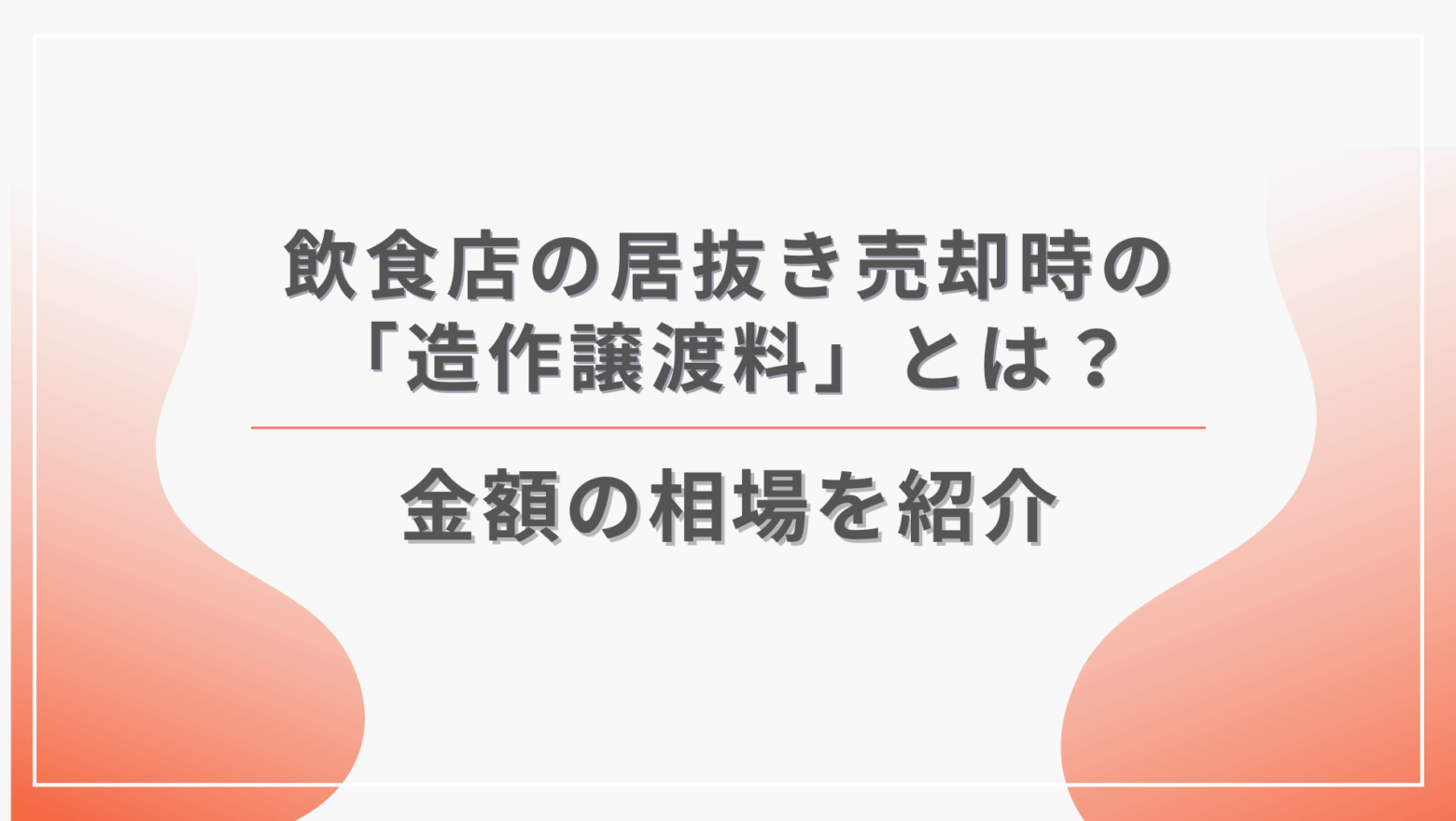 居抜き売却を検討していると、必ず出てくるのがこの「造作譲渡料」。